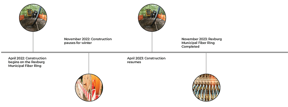 The City of Rexburg is embarking on an upgrade to its communication infrastructure by installing over 20 miles of fiber optic cable throughout the city in order to link city facilities and assets. This new fiber optic communication infrastructure will allow the city to securely monitor and access buildings, security cameras, and other remote assets in real time. This ability will allow the City to be more efficient in delivering services, reduce down times and allow City employees to be more productive. This backbone will serve as the base of the entire network and is designed for redundancy to the internet and doesn't fail if fiber lines accidentally get cut. The network is also being "future-proofed" so that the infrastructure will be able to handle demand as we grow as a community.